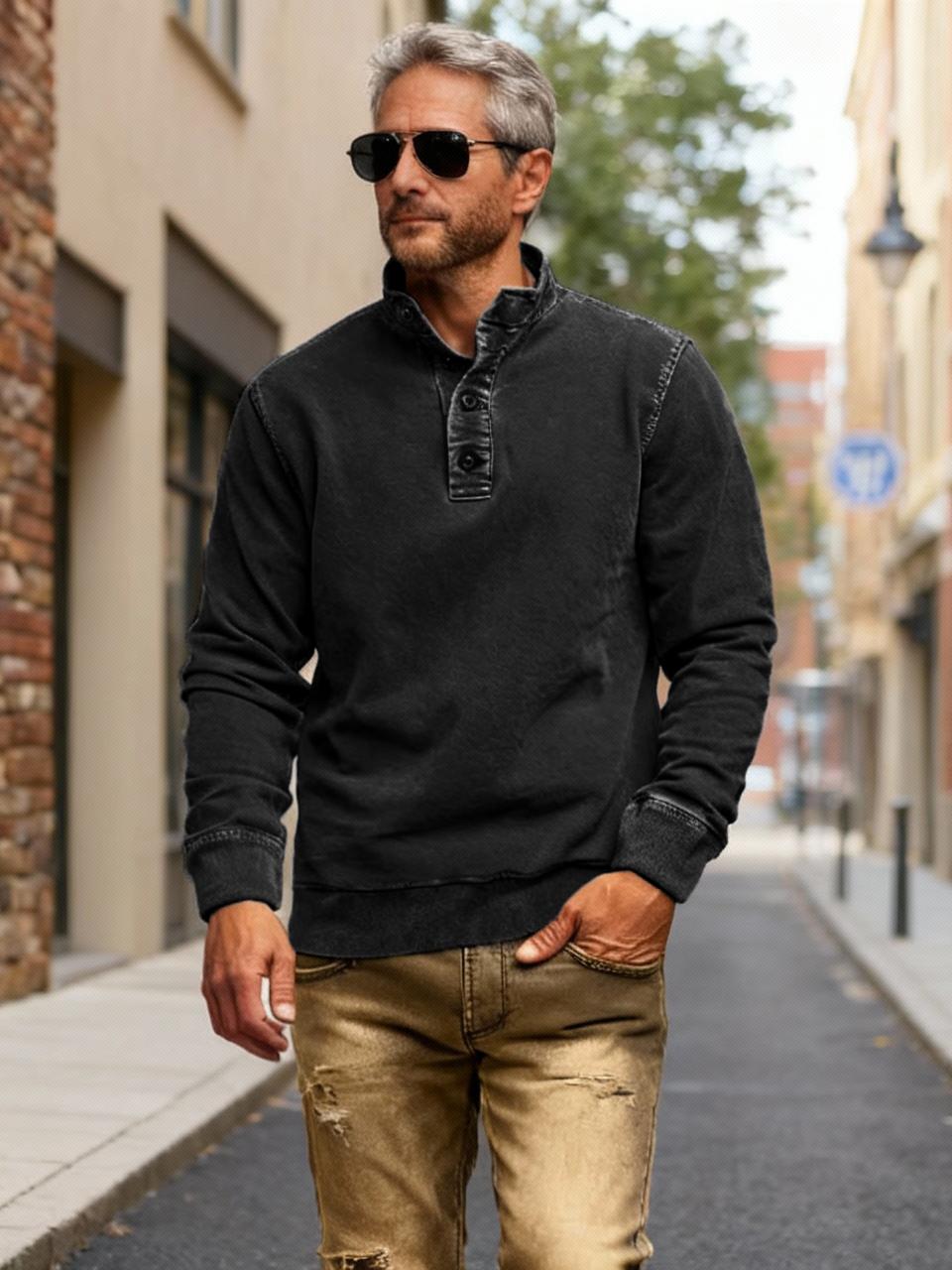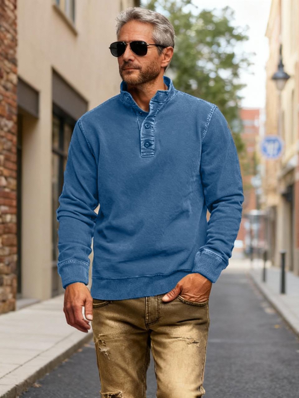 NEW🔥 Men's Retro Casual Stand Collar Button Solid Color Sweatshirt