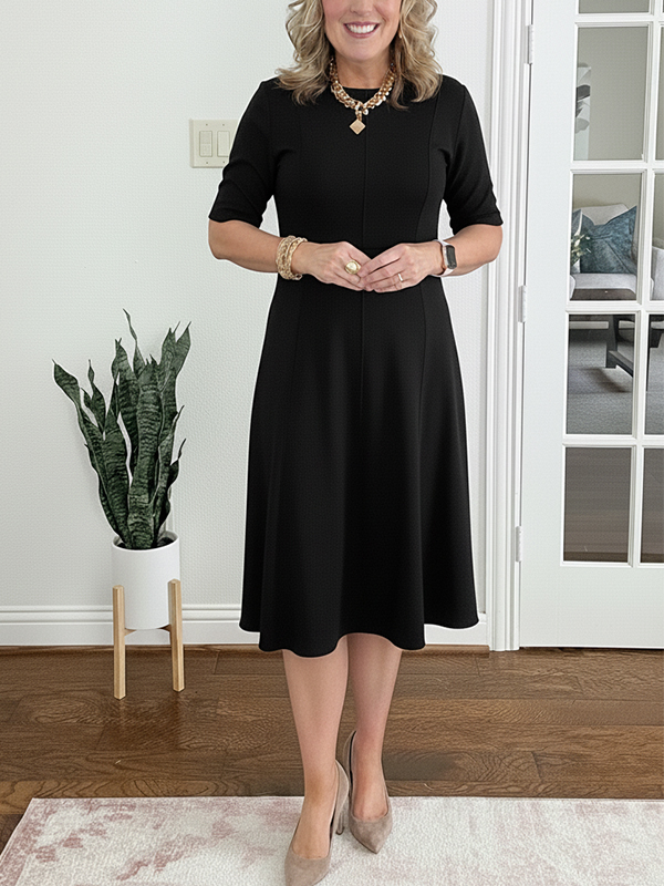 The crew neck vertical striped elegant dress is a versatile and stylish addition to any wardrobe. With its unique design elements and comfortable fit, it is perfect for both casual outings and more formal occasions. Embrace the effortless elegance of this dress and let it become your go-to piece for a variety of events.