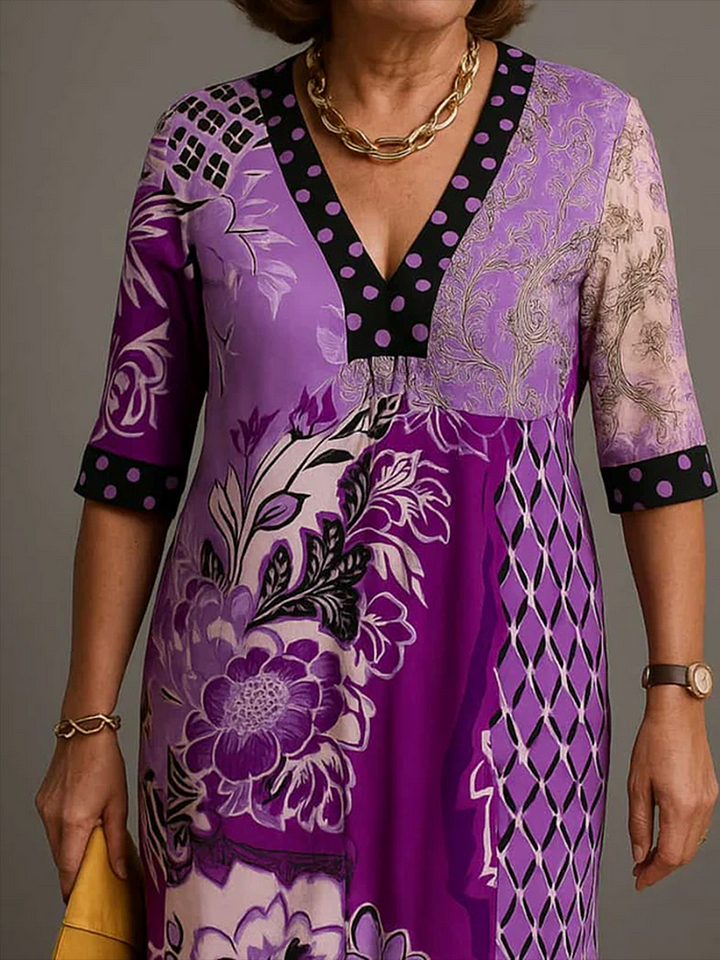 Timeless Elegance: Floral Polka Dot Print V-neck Dress